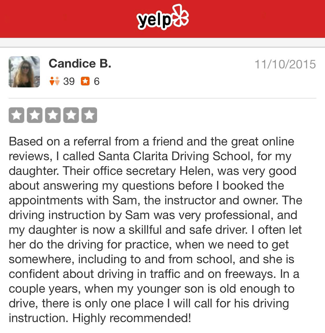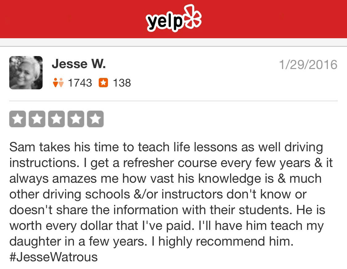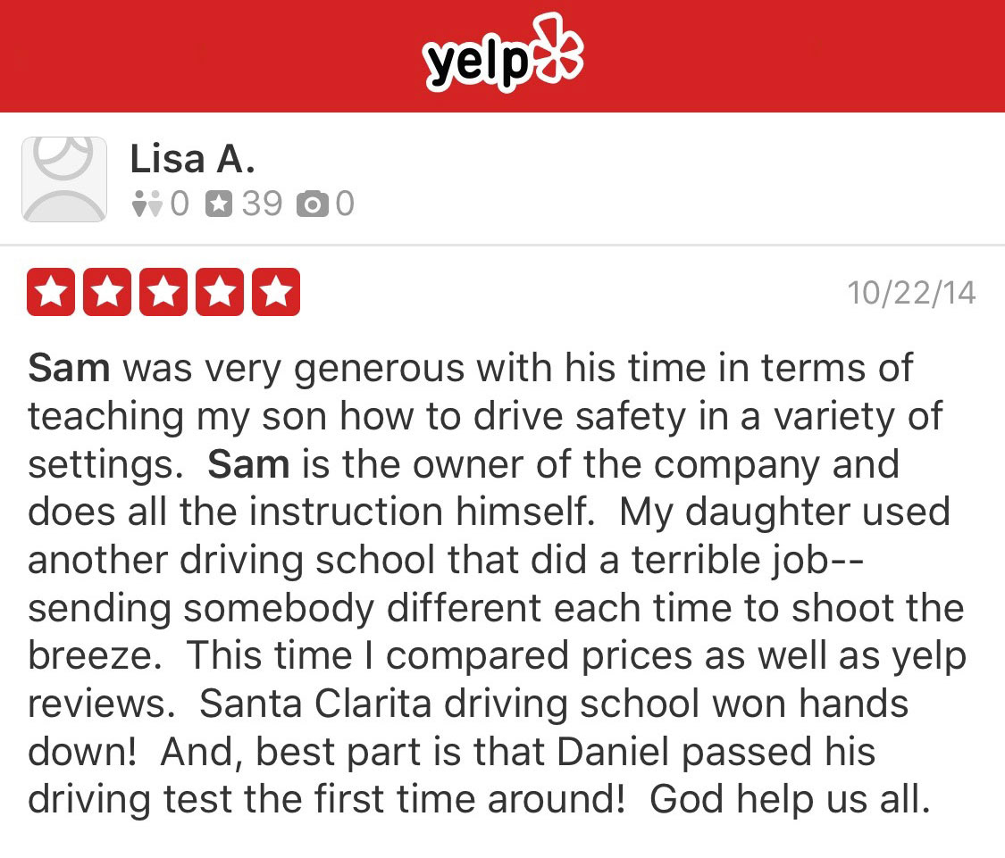 I appreciate your reviews on Yelp and any other social sites.